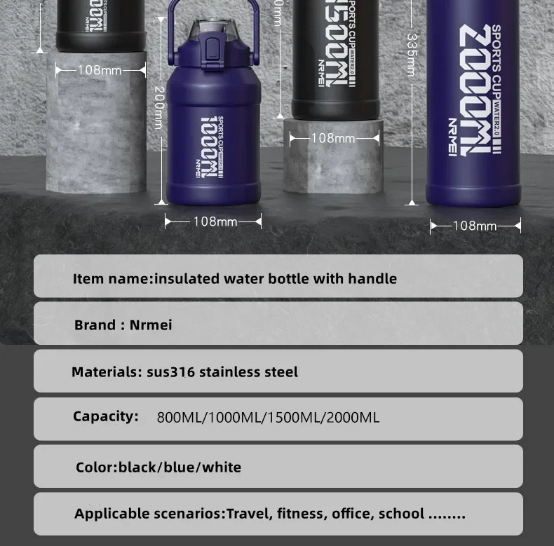 Giant 2L Gym Water Jug - 36H Ice Cold, No Refills Needed!